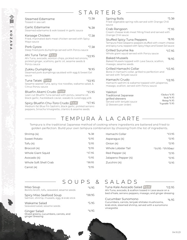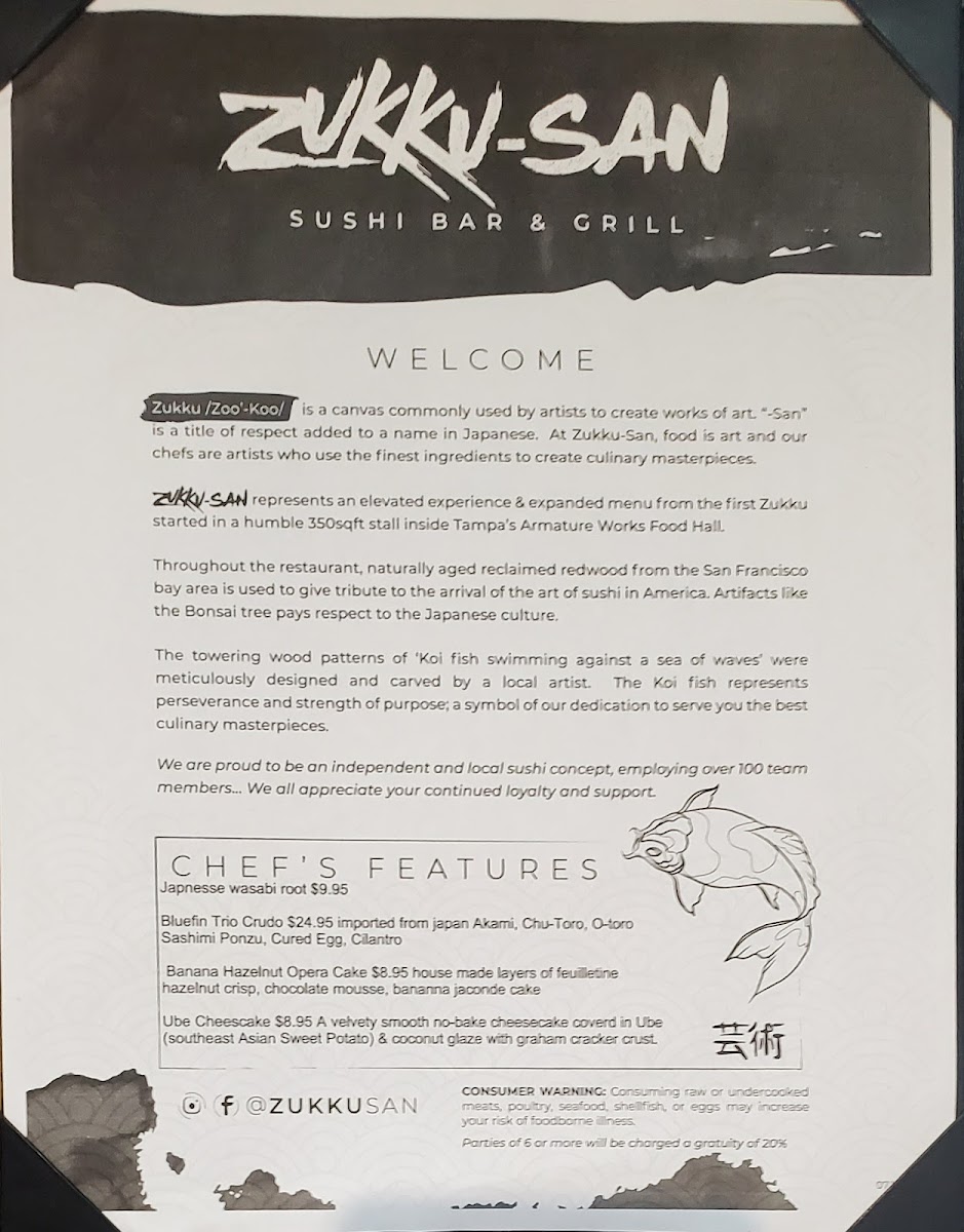 Introducing the Menu at ZukkuSan Sushi Bar and Grill